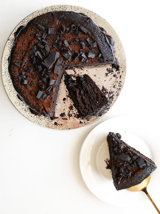 Drunken Triple Dark Chocolate Pea Protein Cake