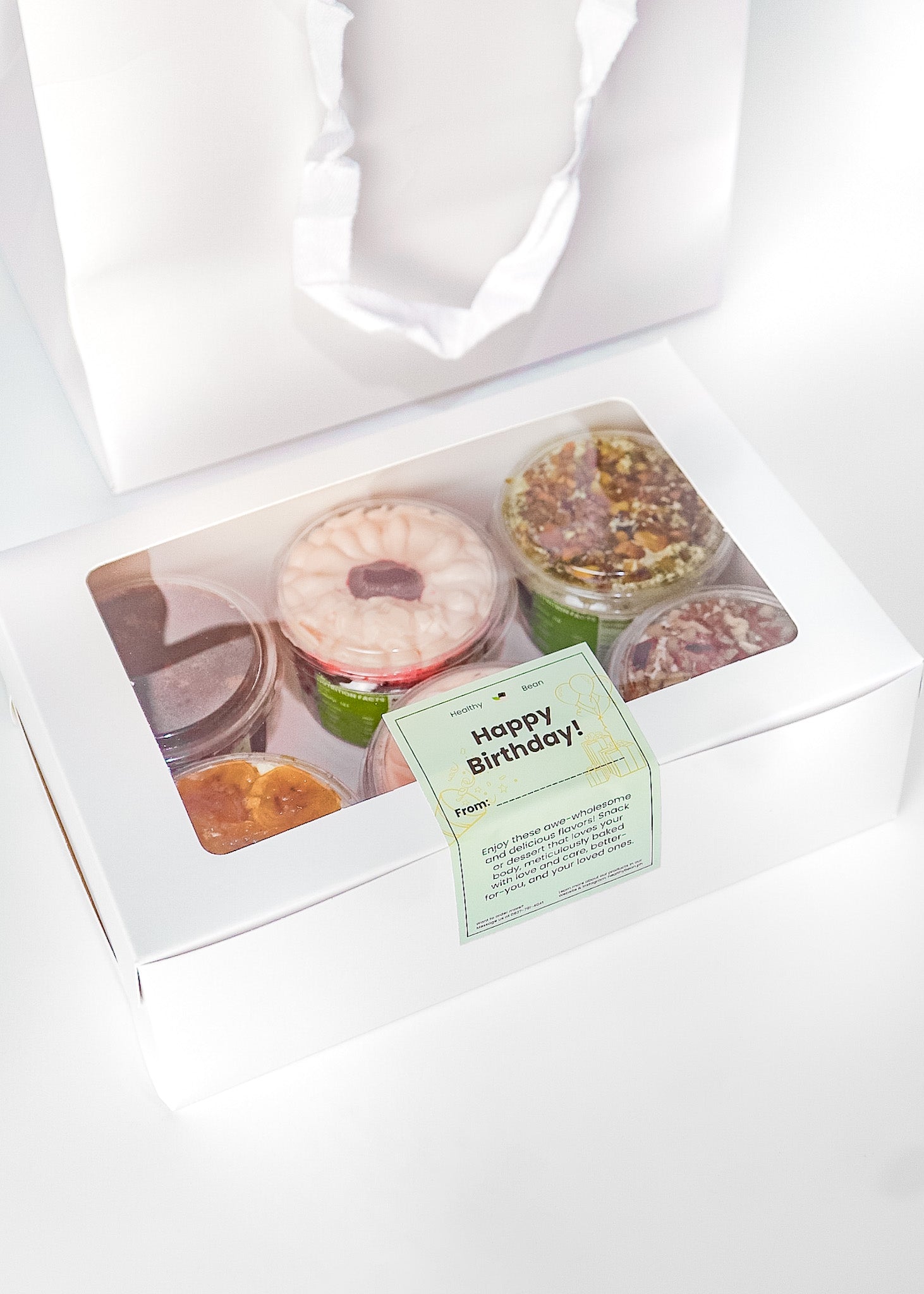 Get a free gift greeting sticker in this product bundle. Choose your desired quantity, chosen flavors, and a free sticker. Leave your special message in the Special Instruction if you choose the 'Custom Message Sticker' at the checkout section before you complete your order.